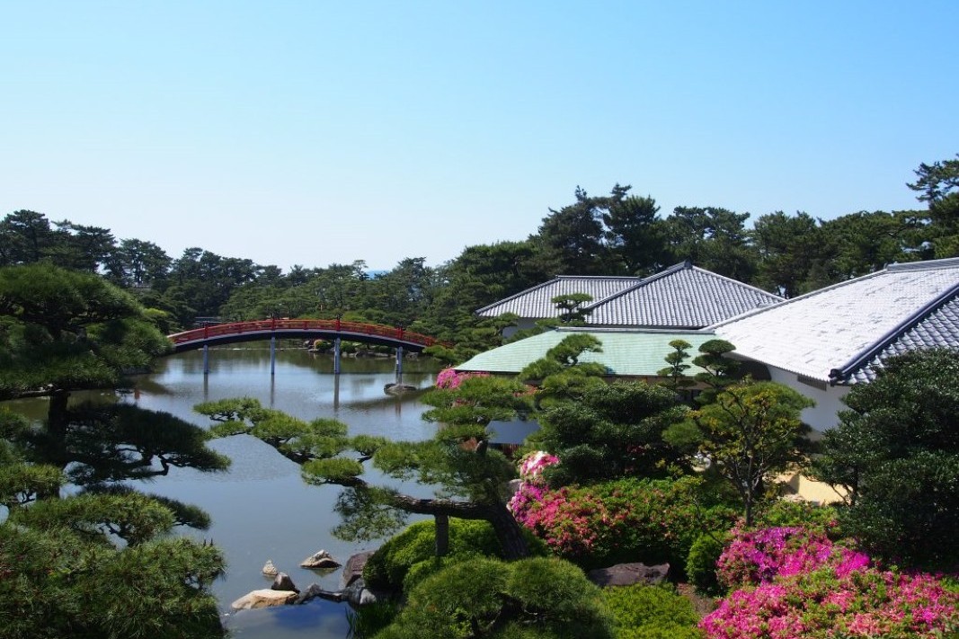 鳴門(8:50)===鳴門公園(エスカヒル展望台より大鳴門大橋展望とうずしお見物)===<高松道>===丸亀/香川二大名園「中津万象園」(見学・讃岐うどんの昼食)===津島ノ宮===琴禅公園「銭形砂絵」(展望台より見学)===<松山道>===(16:40)道後温泉 ★到着後、道後温泉本館など自由散策★ |